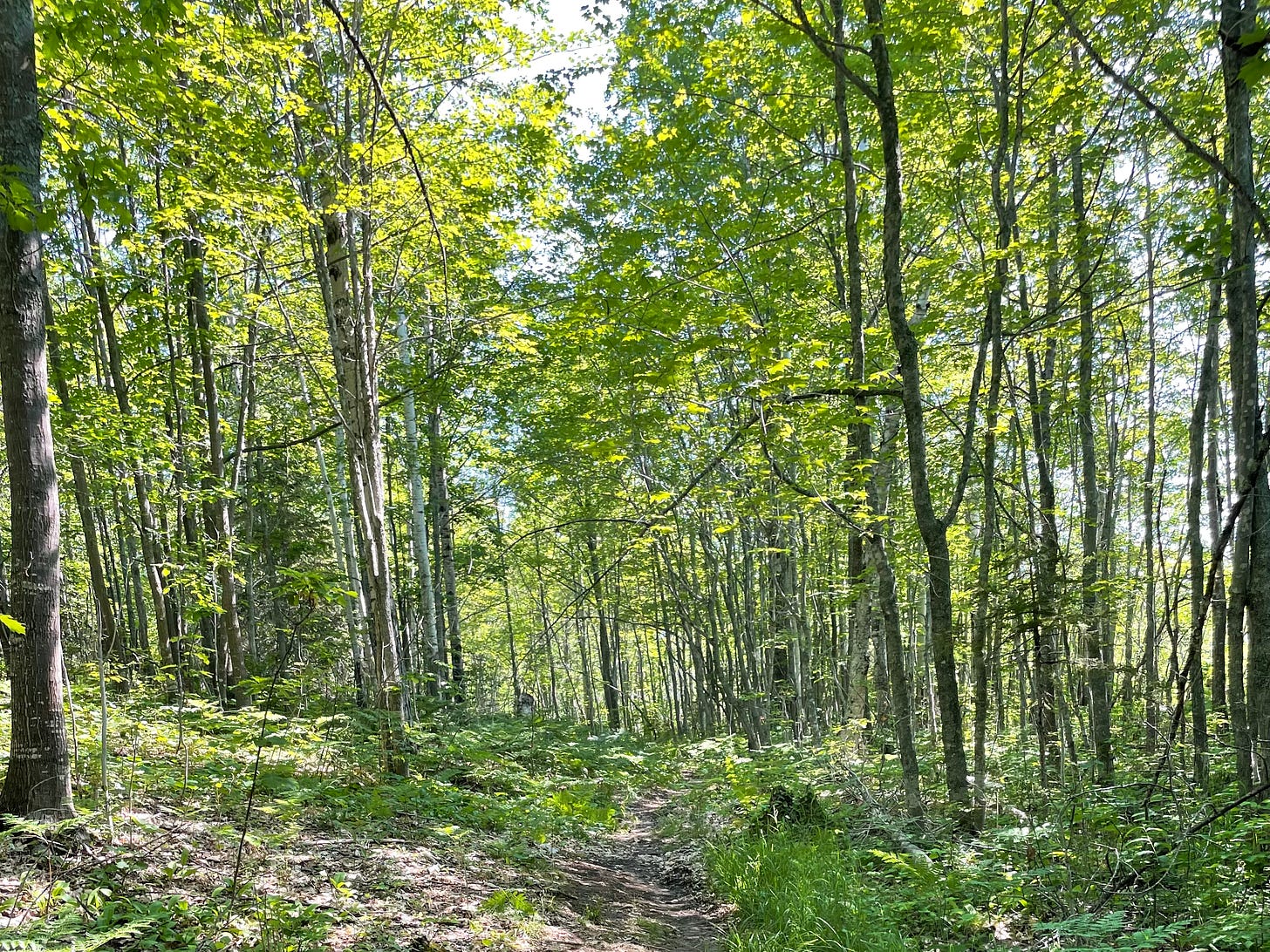 Last weekend—as I was finishing up my recent essay about backpacking Isle Royale1—an occasional, but very familiar birdsong wafted in from my parents’ backyard in suburban Milwaukee. Though I am generally pretty useless at identifying birds by ear2, something about this one kept tickling at a memory in the far reaches of my mind. The bird would belt out a single round of its tune and then go silent for hours, while I was left wondering why the sound was bringing to mind the image of a rather mundane section of trail on Isle Royale. Finally, I decided that wires must have crossed in my brain, conflating what I was writing about with some common bird I was hearing.