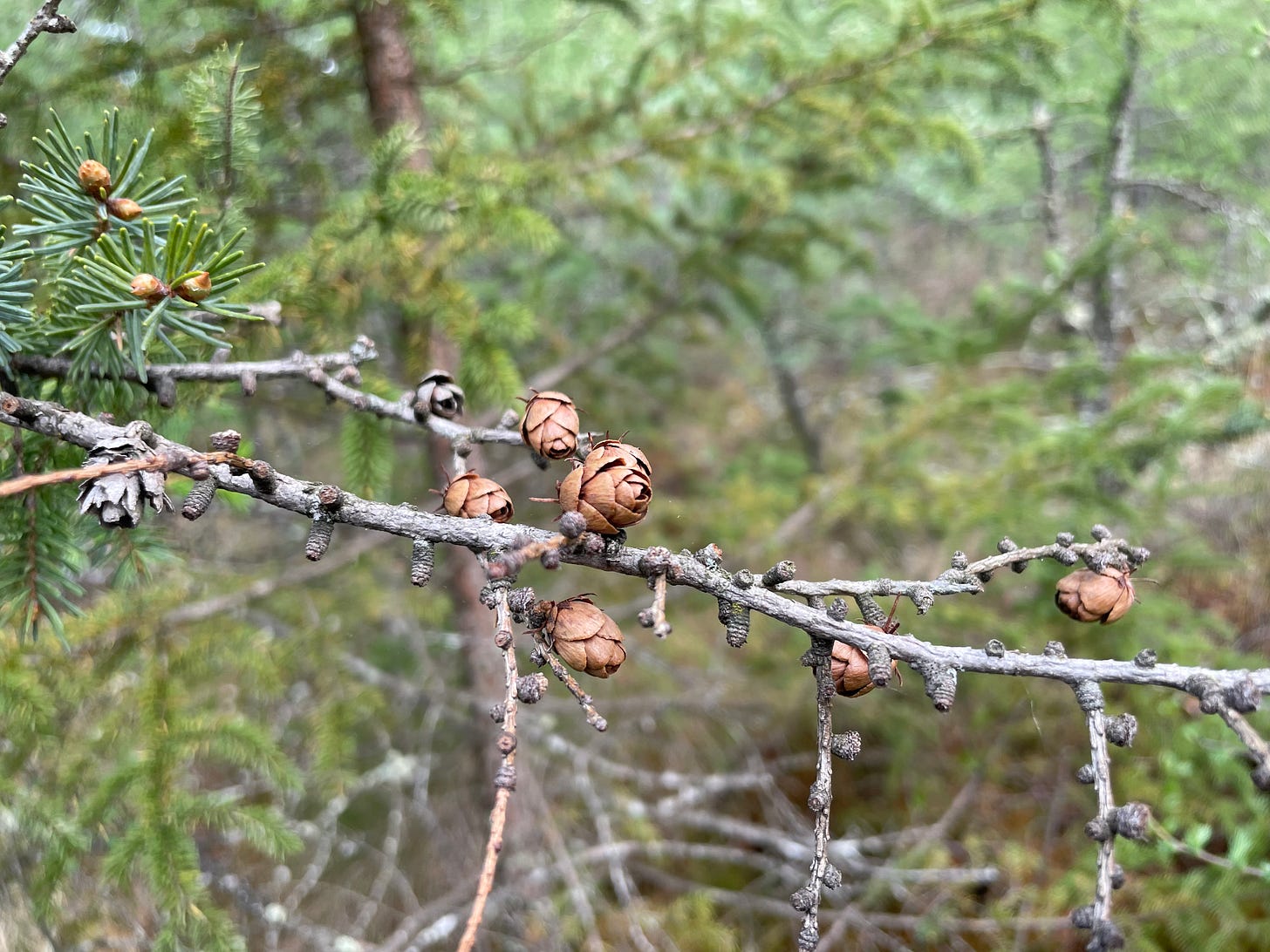 With that in mind, I focused my attention towards the larger tamaracks and peered upwards, hoping for a hint of color. Though last year’s cones were plentiful—and beautiful in their own right—I could not find new growth. Eventually, I turned back. Perhaps the trees needed a few more weeks of warmth. After all, the previous night had seen temperatures dip to just a few degrees above freezing.